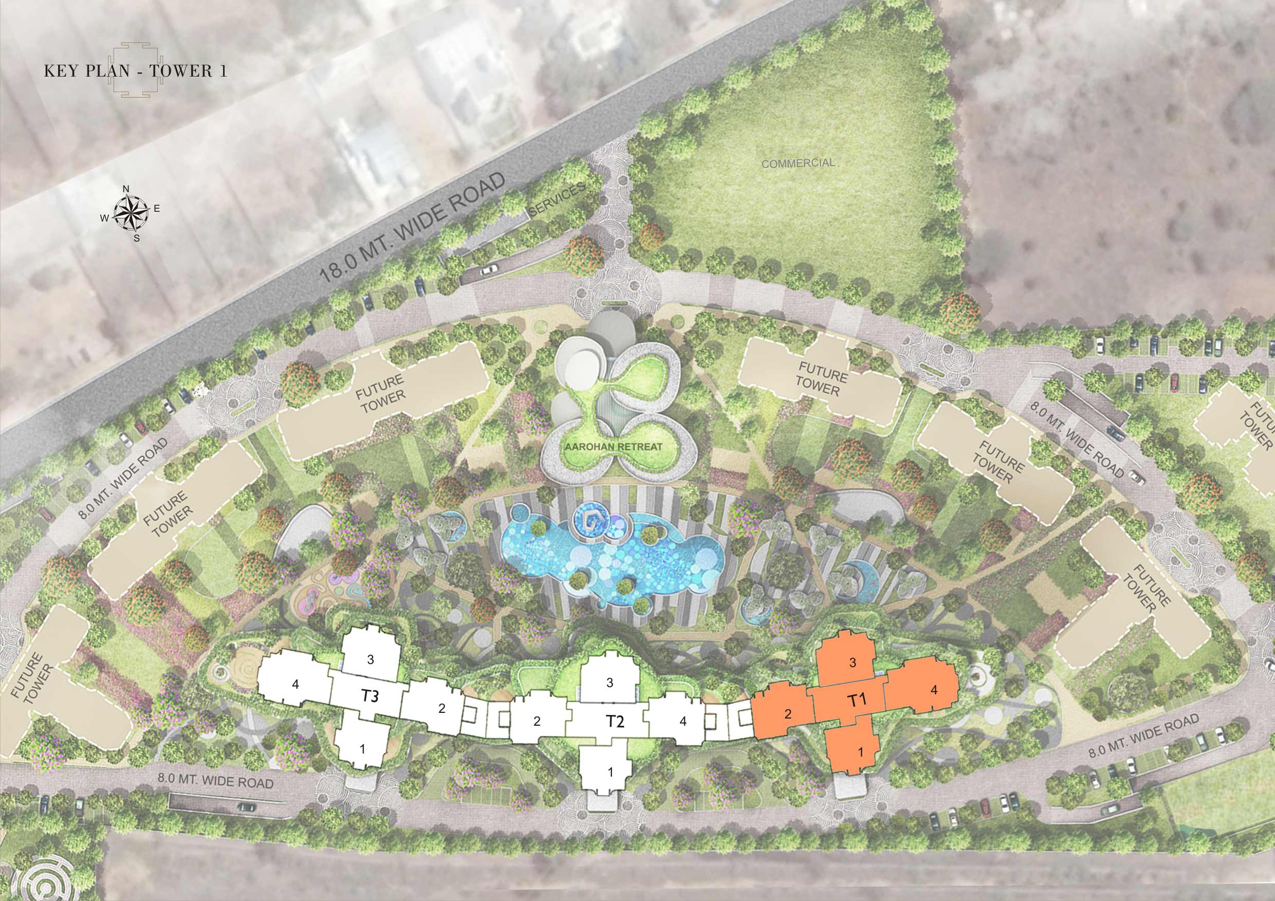 Your new world unfolds on Golf Course Road, Gurgaon With nature in its heart and heart in its nature, Aarohan presents future-ready residences for the love of being at home. The life at Aarohan is like an oasis far from the hustle and bustle of the urban life. It is packed with an array of modern facilities and active lifestyle options with calming water features and abundant green spaces. Aarohan brings not one but multiple social hubs to regale your mind, body and spirit. Aarohan. A greener world. A purposeful world. A future-ready home..